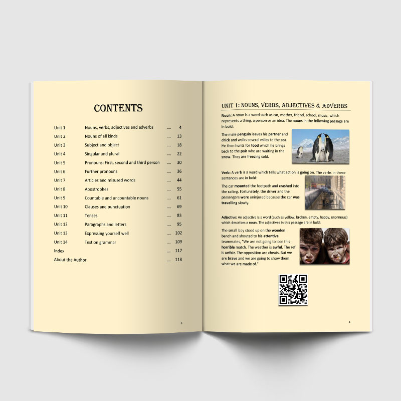 It’s for every student in school and for anyone who needs to write reports or communications at work. It covers all the aspects of basic English grammar in 14 short units and explains the rules in an easy, light-hearted tone.